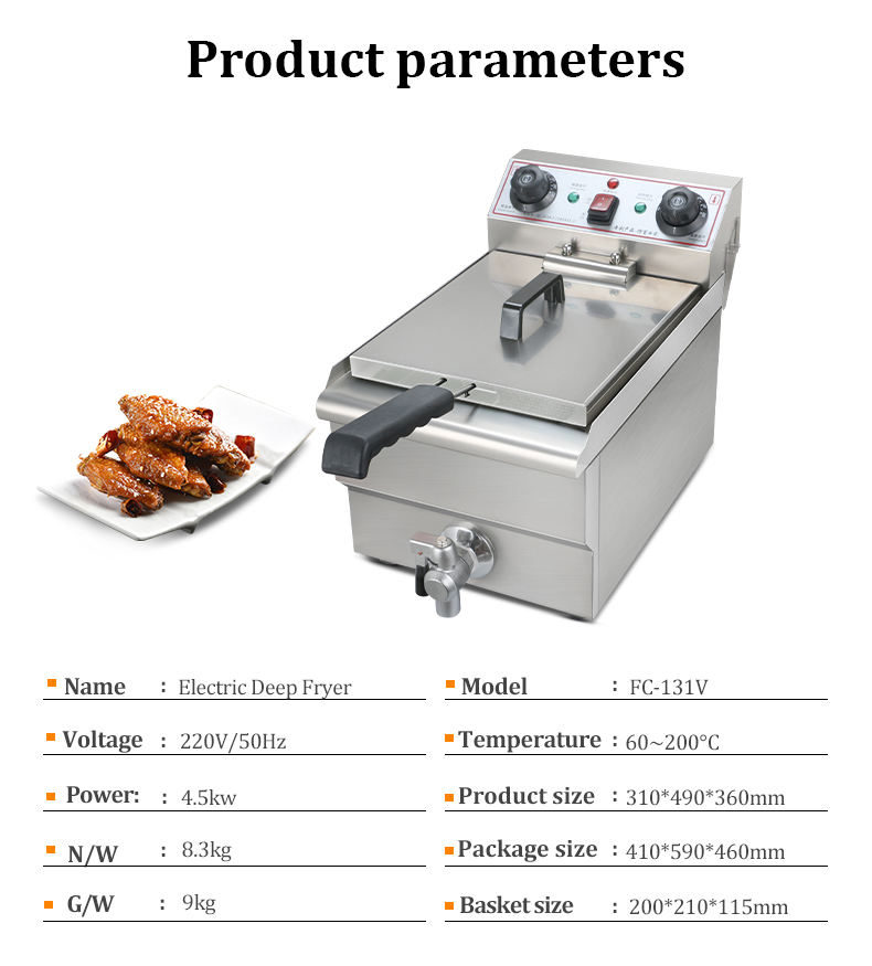 The FC-131V Commercial Single Pot Fryer is engineered to optimize your kitchen’s workflow. Combining a space-efficient 13-liter capacity with robust stainless steel construction, this commercial single pot fryer delivers professional-grade performance, precision, and unparalleled ease of use for demanding service environments.