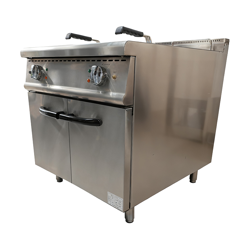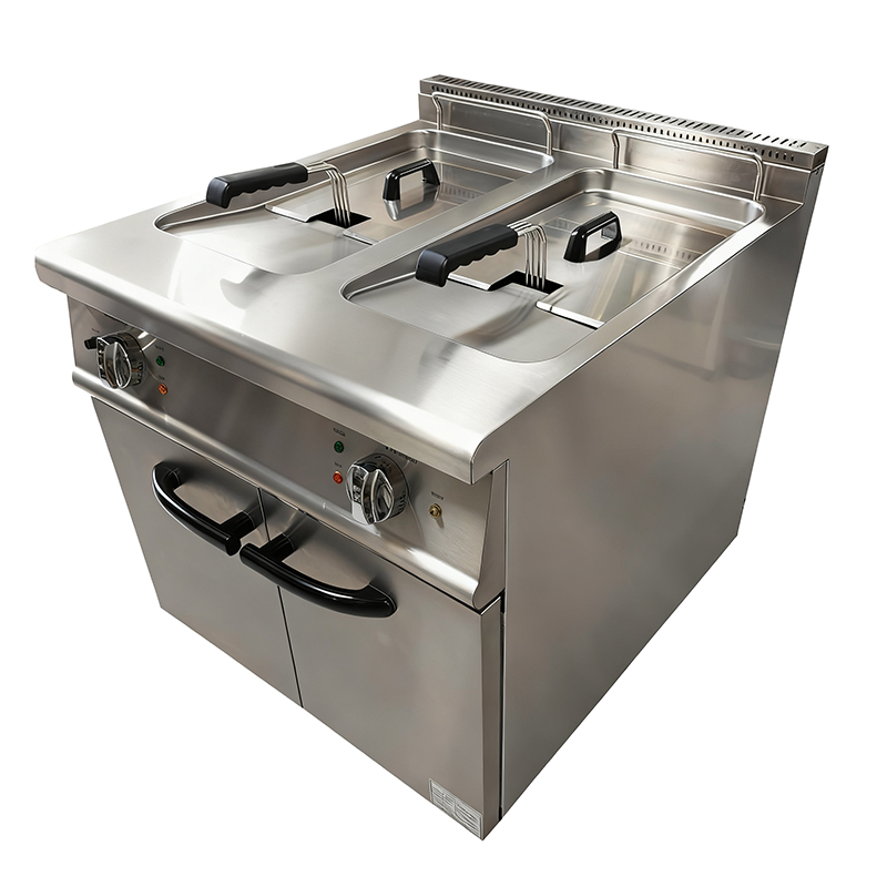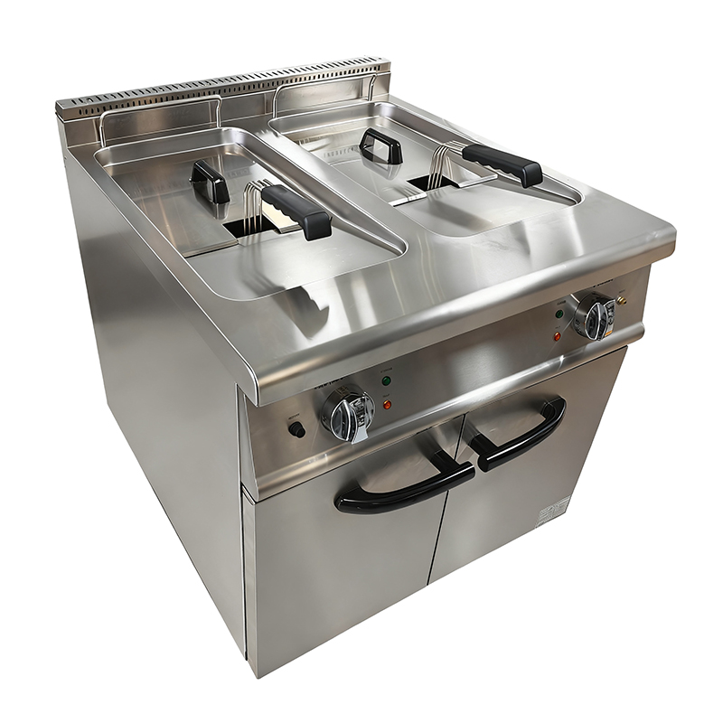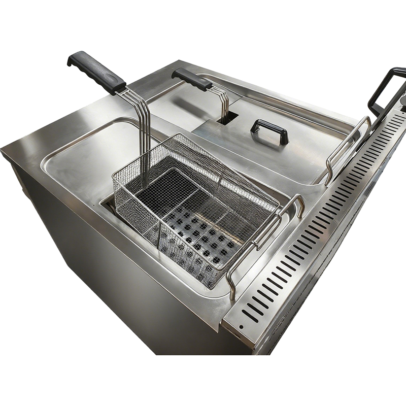 The included baskets with covers enhance safety and efficiency. As part of our modular system, the base cabinet for this fryer can be tailored to store oil, filters, or frozen goods, making this high-performance 2-Basket Electric Fryer a perfectly integrated component of your kitchen.