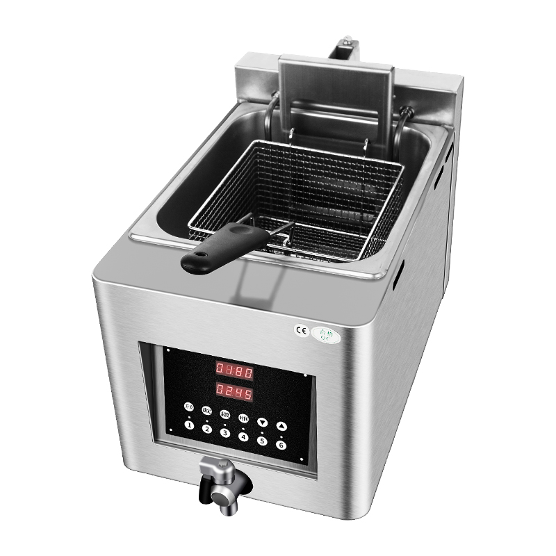 - Six Programmable Smart Preset Menus: Featuring customizable memory settings for different menu items including French fries, chicken wings, drumsticks, fillets, whole chicken, and hash browns. This programmable restaurant fryer ensures consistent flavor and quality across all locations, making it ideal for chain operations and franchise businesses.
