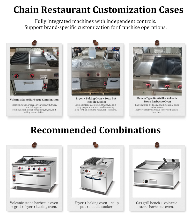 The FD-RS-6A Modular Commercial Kitchen Station is the ultimate solution for chain restaurants, central kitchens, and high-volume food service providers who refuse to be limited by standard equipment. This isn’t a single appliance; it’s a fully customizable cooking ecosystem. Freely combine volcanic stone grills, fryers, baking ovens, soup pots, and noodle cookers into a single, integrated station that perfectly matches your menu and kitchen layout.