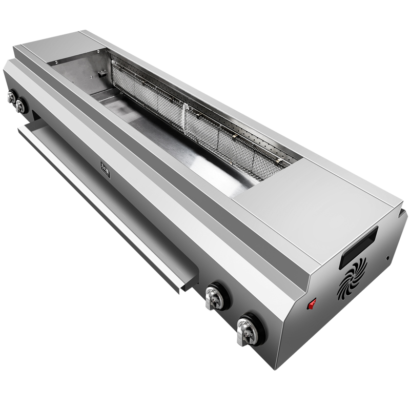 - Enhanced Ventilation & Cooling System: The upgraded airflow design incorporates a powerful cooling fan system that manages heat distribution and further reduces smoke. The fan control switch allows operators to adjust ventilation based on cooking requirements, ensuring consistent performance in various conditions.